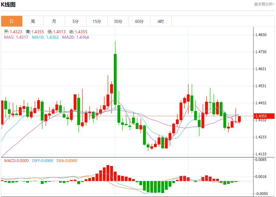 截至目前,美元/加元上涨0.22%,报1.4357。