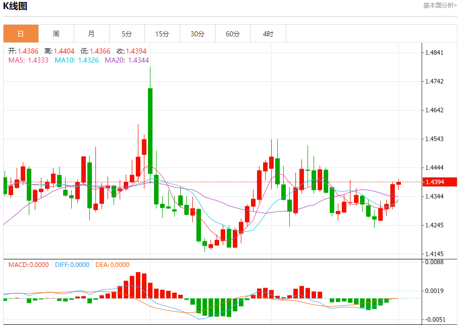 截至目前,美元/加元上涨0.09%,报1.4402。