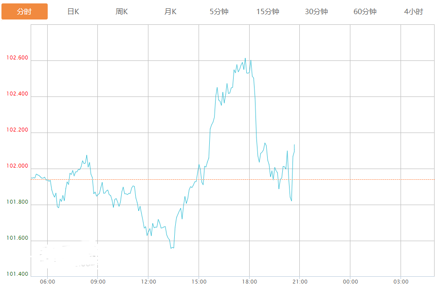 截至目前,美元指数上涨0.15%,报102.084。