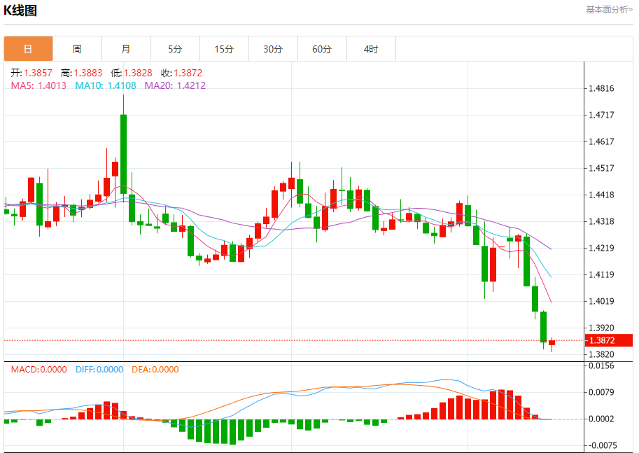截至目前,美元/加元上涨0.04%,报1.3874。