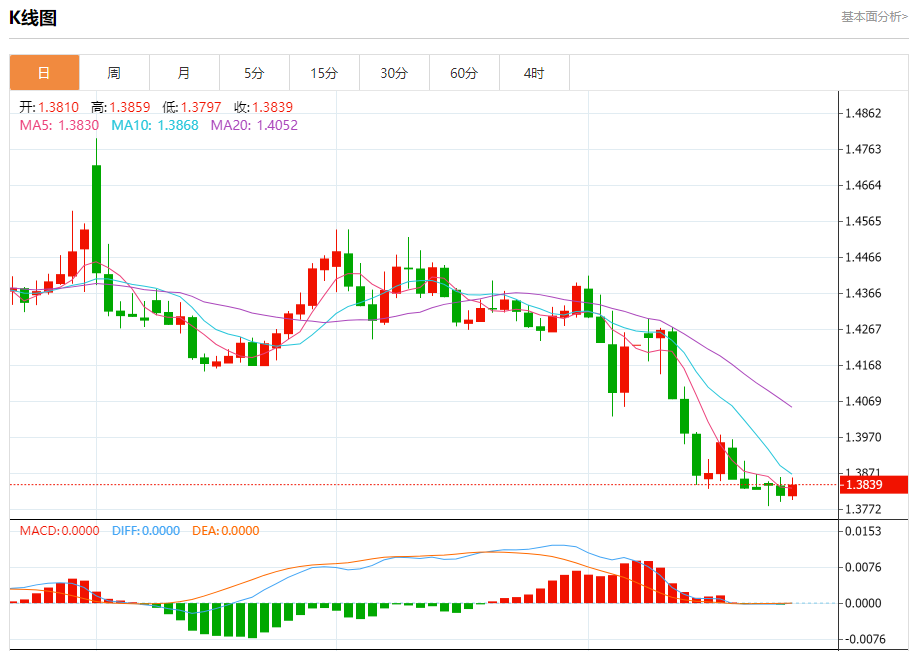 截至目前,美元/加元上涨0.19%,报1.3840。