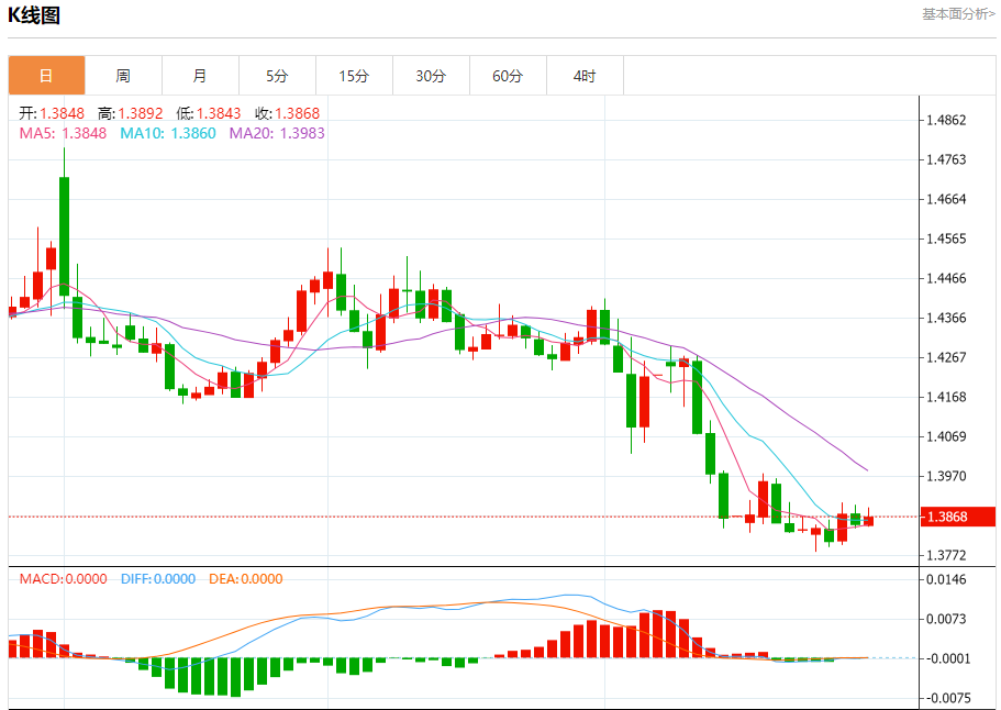 截至目前,美元/加元上涨0.13%,报1.3870。