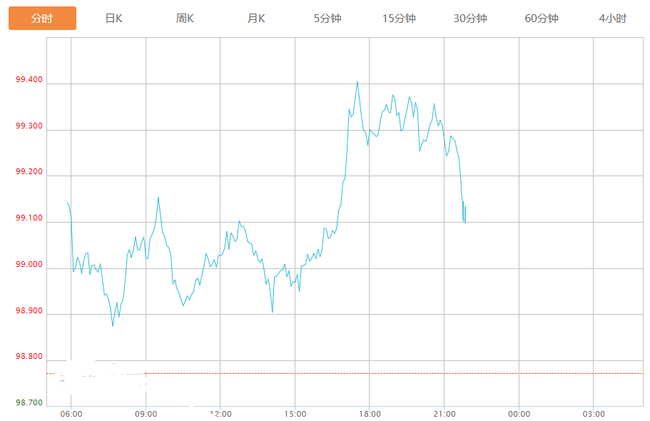 截至目前,美元指数上涨0.44%,报99.209。