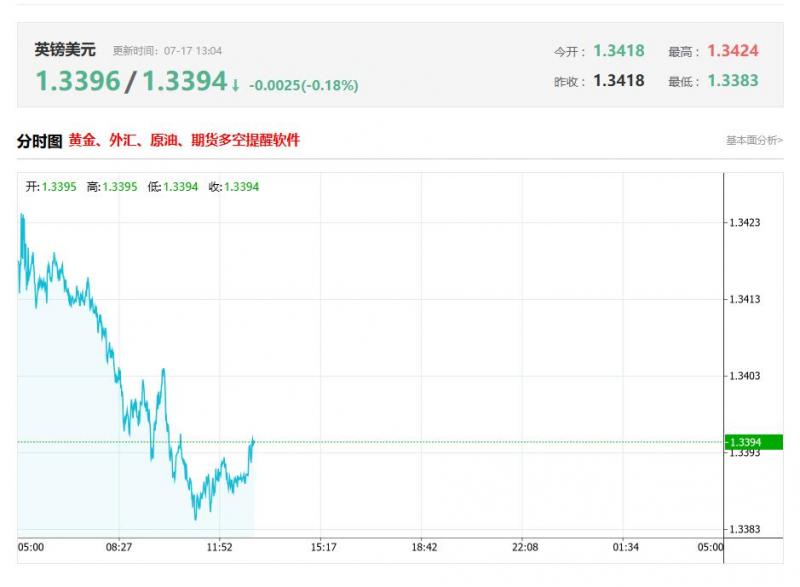 截至目前,英镑/美元下跌0.18%,报1.3394。