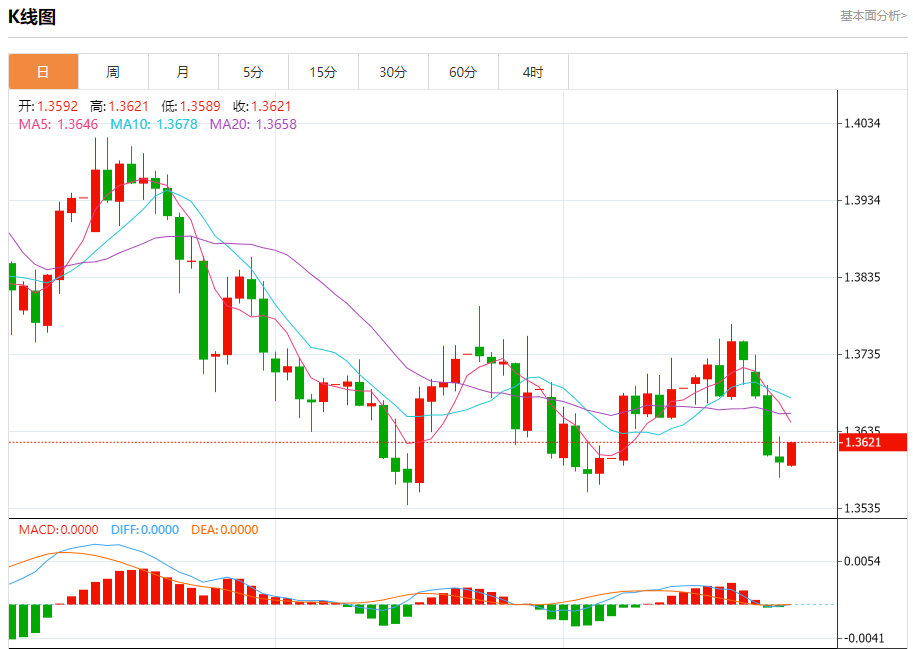 截至目前,美元/加元上涨0.19%,报1.3623。