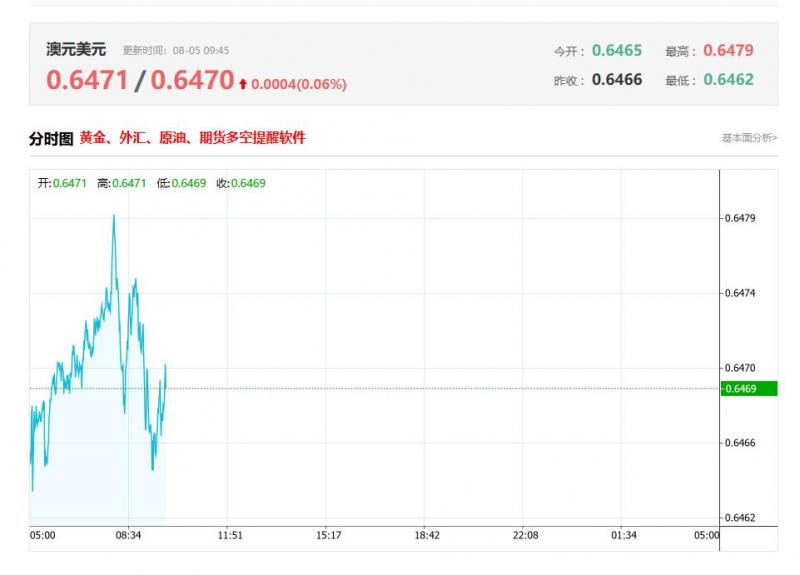 截至目前,澳元/美元上涨0.06%,报0.6470。