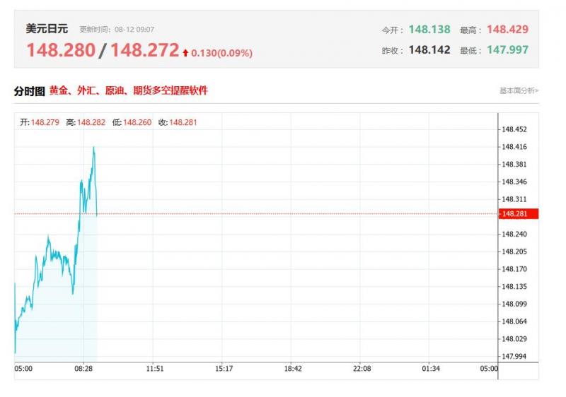 截至目前,美元/日元上涨0.09%,报148.272。