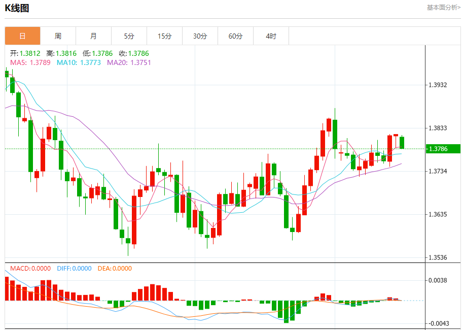 截至目前,美元/加元下跌0.23%,报1.3788。