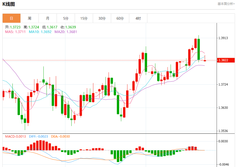 截至目前,美元/加元下跌0.01%,报1.3824。
