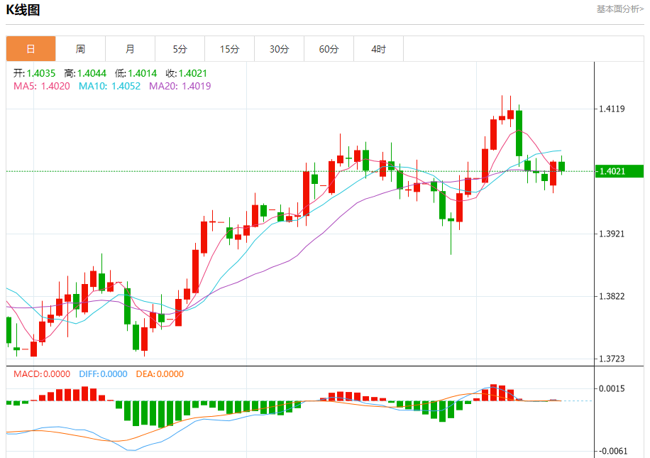 截至目前,美元/加元下跌0.10%,报1.4022。