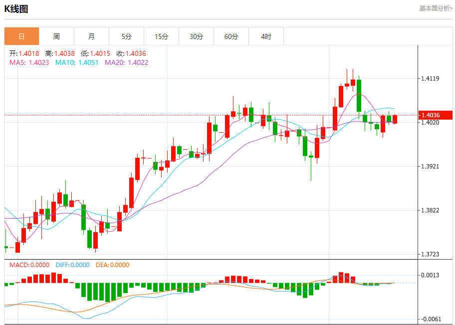 截至目前,美元/加元上涨0.11%,报1.4038。