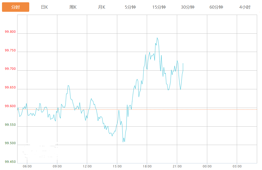 截至目前,美元指数上涨0.10%,报99.695。