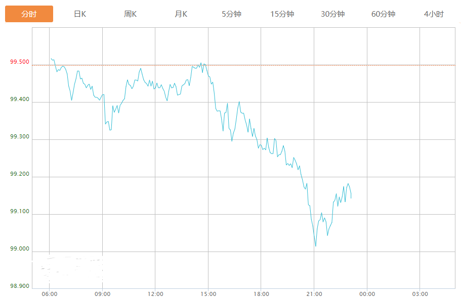截至目前,美元指数下跌0.32%,报99.174。