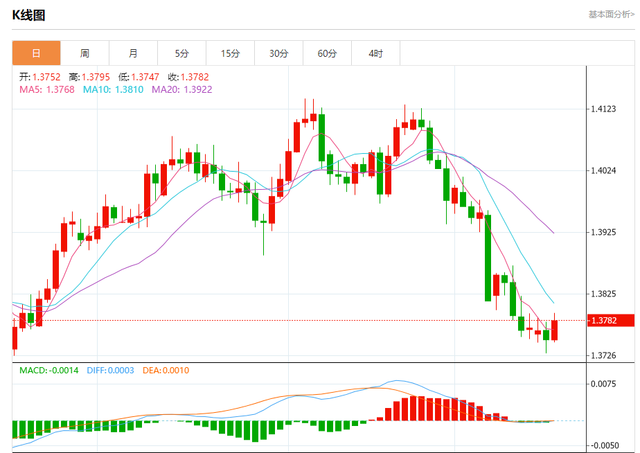截至目前,美元/加元上涨0.22%,报1.3785。