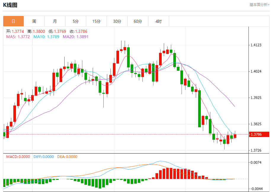 截至目前,美元/加元上涨0.11%,报1.3789。