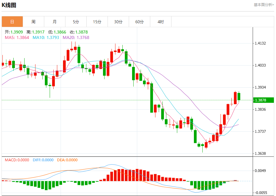 截至目前,美元/加元下跌0.25%,报1.3881。