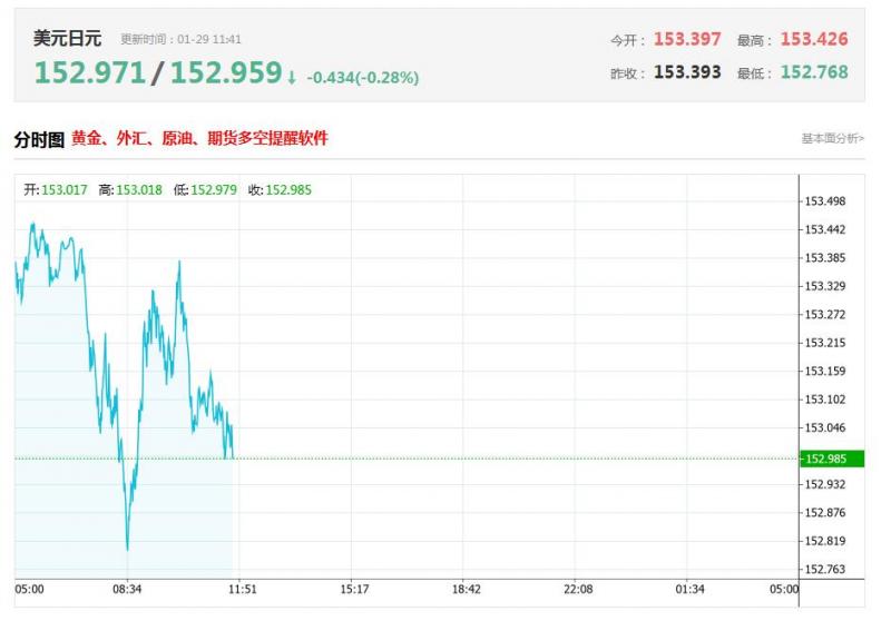 截至目前,美元/日元下跌0.28%,报152.959。