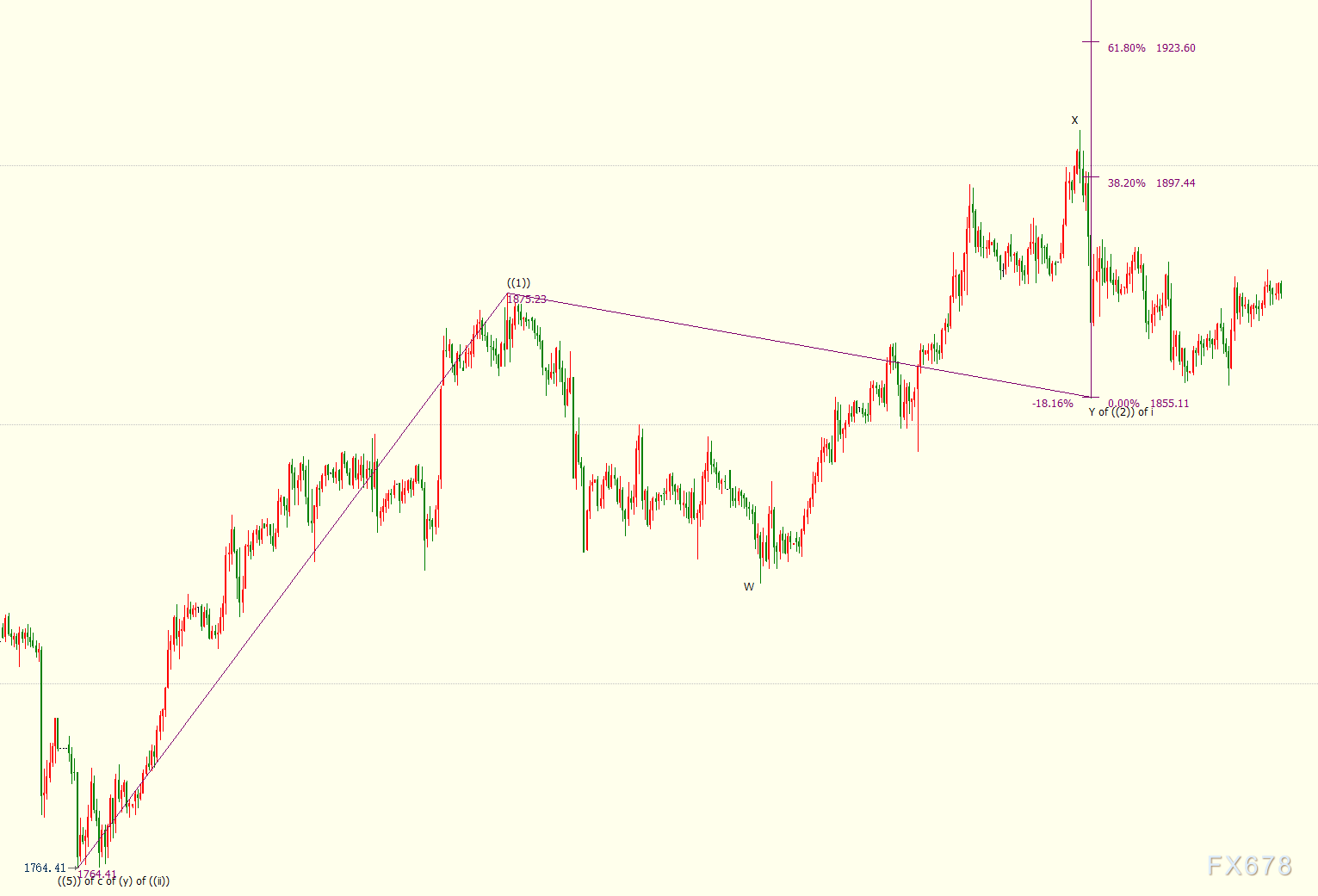 日线图上看,金价自1764美元开启上行((iii))浪走势,(i)浪是((iii))浪的子浪。((iii))浪的23.6%和38.2%目标位分别在1911美元和2002美元,((iii))浪是自1451美元开启的上行5浪的子浪。