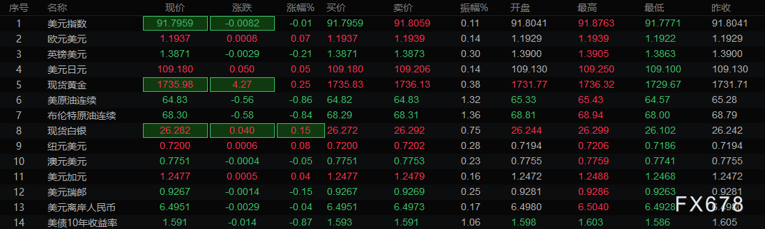 亚洲时段行情一览