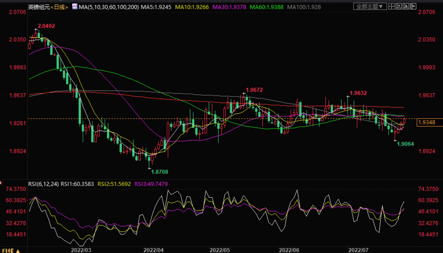 技术指标表明,这一下滑趋势将继续,这可能使这对组合回到1.9100点的通道底部。100 SMA低于200 SMA,表明阻力最小的路径是向下,或者阻力更可能保持而不是破裂。