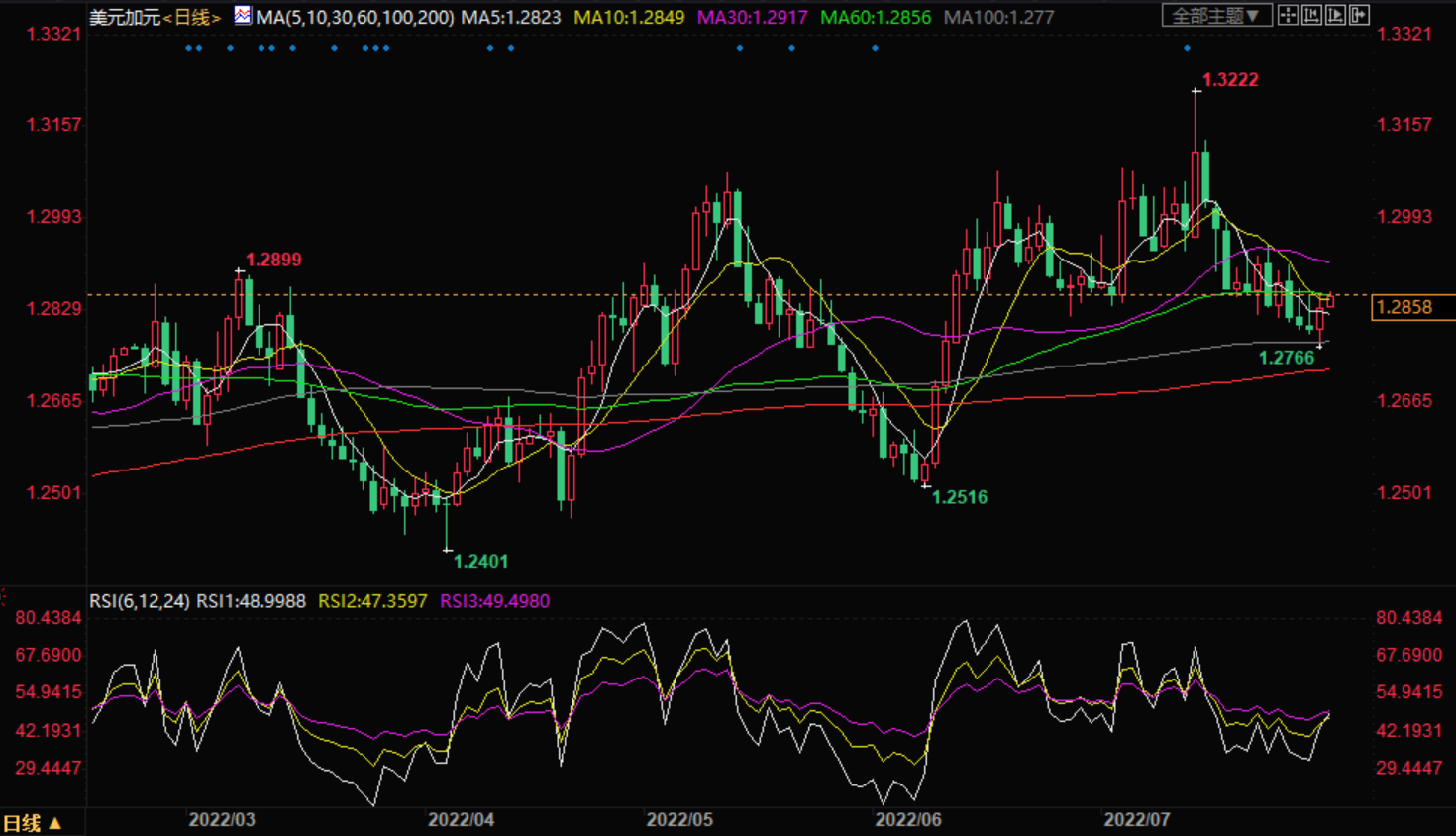 美元兑加元汇率走势技术分析