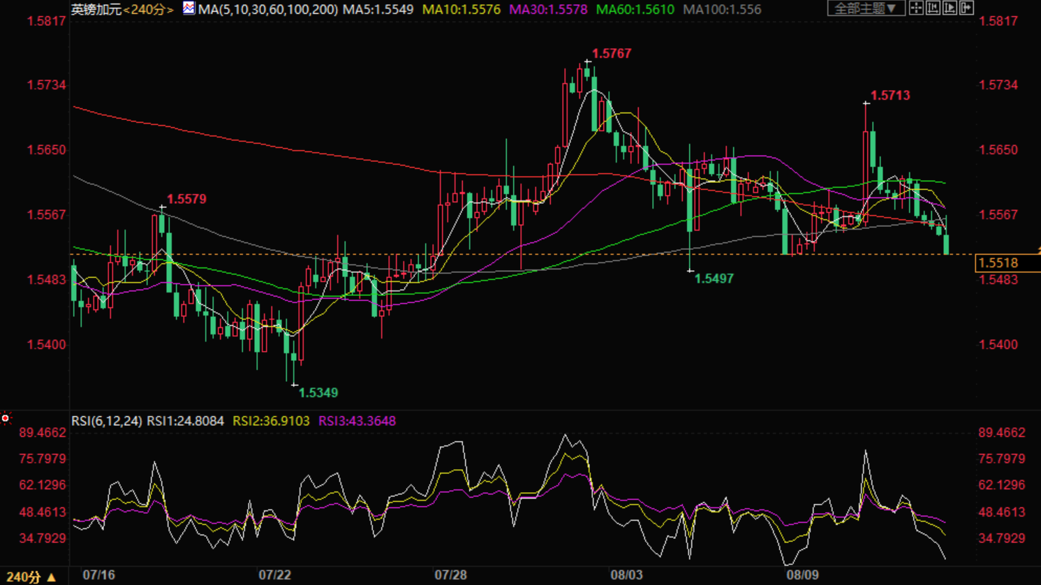 四小时图表显示,英镑对加元的汇率跌破了关键支撑位1.5590。这是今年7月19日的最高价。它已经成功地移动到25日移动平均线以下,而MACD已经移动到中点以下。