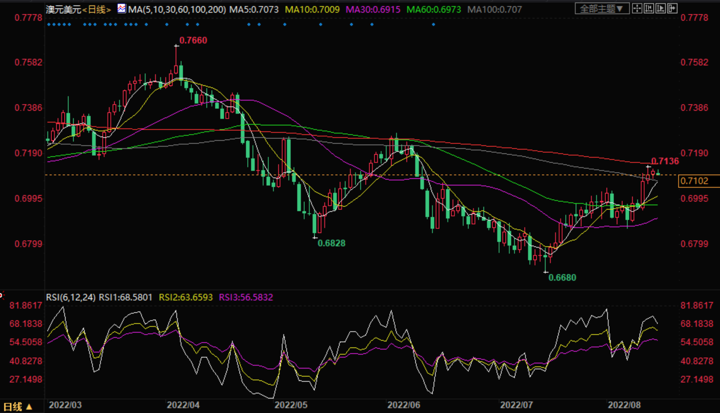 澳元兑美元汇率走势技术分析