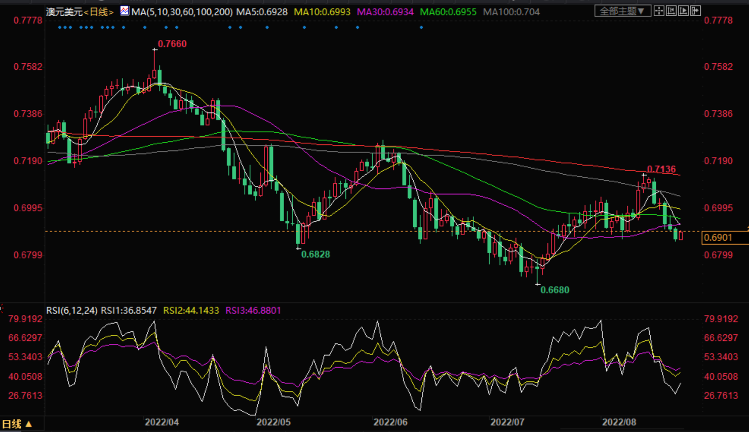 相对强弱指标(RSI)(14)已转入20.00-40.00看跌区间,这加强美元多头。如果澳元/美元跌破上述需求区,将打压澳元/美元接近7月6日高点0.6827,然后是7月5日低点0.6761。