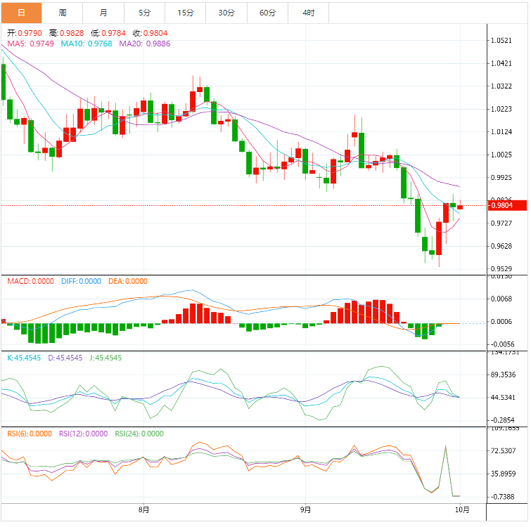 继续向下,周五的低点0.9734可能再次发挥作用。