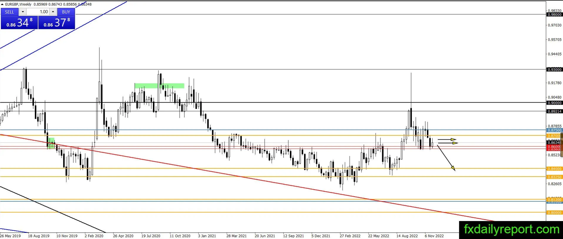 在周线图上,欧元兑英镑受到0.8580 - 0.8600区域的支撑,但我们可能会在该区域下方看到看跌突破。如果出现看跌突破,那么欧元兑英镑将遵循较高的时间框架,目标位为0.8400的支撑位。交易员将避免多头头寸,或目前只进入投机性多头头寸。
