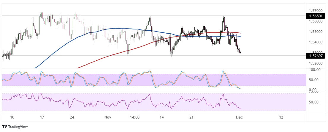 随机指数已经处于超卖区域,表明卖方已经耗尽,因此转高意味着多头压力上升。相对强弱指数有更大的南下空间,因此该货币对可能在抛售势头仍在发挥作用时跟进。