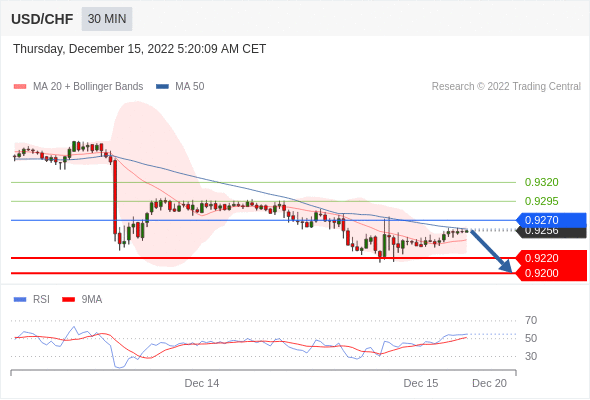 美元/瑞郎汇率今日分析:在 0.9270 之下,看跌,目标价位为 0.9220 ,然后为 0.9200 。 在 0.9270 上,看涨,目标价位定在 0.9295 ,然后为 0.9320。