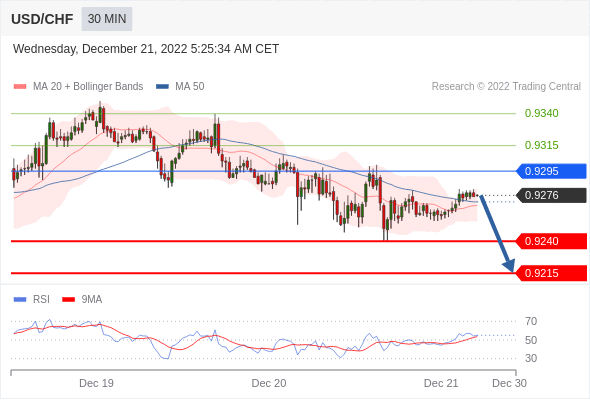 美元/瑞郎汇率今日分析:在 0.9295 之下,看跌,目标价位为 0.9240 ,然后为 0.9215 。在 0.9295 上,看涨,目标价位定在 0.9315 ,然后为 0.9340。