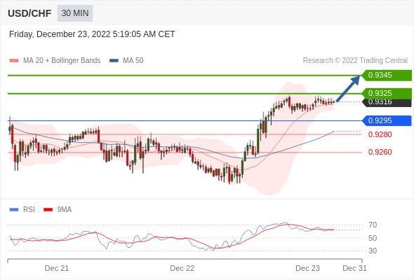 美元/瑞郎汇率今日分析:在 0.9295 之上,看涨,目标价位为 0.9325 ,然后为 0.9345 。在 0.9295 下,看空,目标价位定在 0.9280 ,然后为 0.9260。