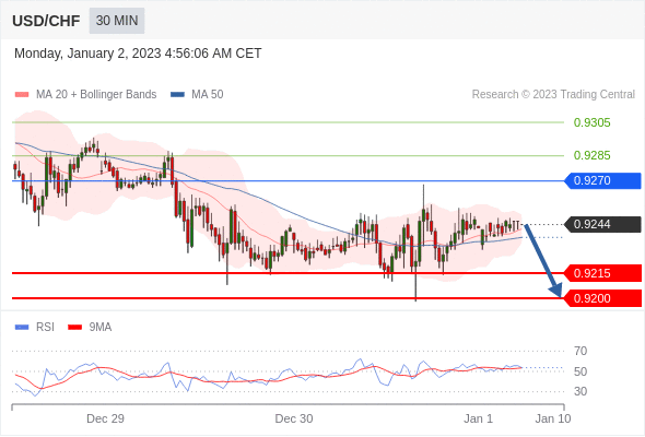 美元/瑞郎汇率今日分析:在 0.9270 之下,看跌,目标价位为 0.9215 ,然后为 0.9200 。在 0.9270 上,看涨,目标价位定在 0.9285 ,然后为 0.9305。