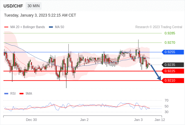 美元/瑞郎汇率今日分析:在 0.9255 之下,看跌,目标价位为 0.9225 ,然后为 0.9210 。在 0.9255 上,看涨,目标价位定在 0.9270 ,然后为 0.9285。