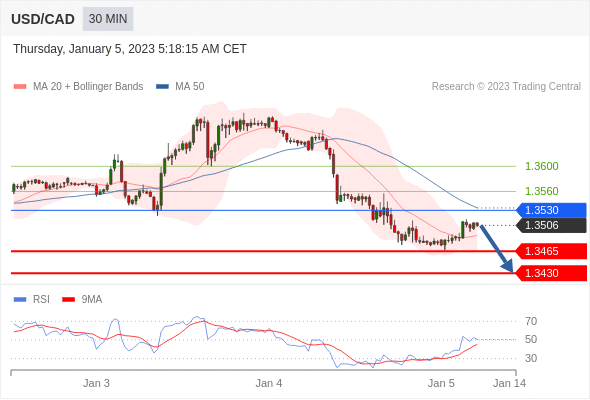 美元/加元汇率今日分析:在 1.3530 之下,看跌,目标价位为 1.3465 ,然后为 1.3430 。在 1.3530 上,看涨,目标价位定在 1.3560 ,然后为 1.3600。