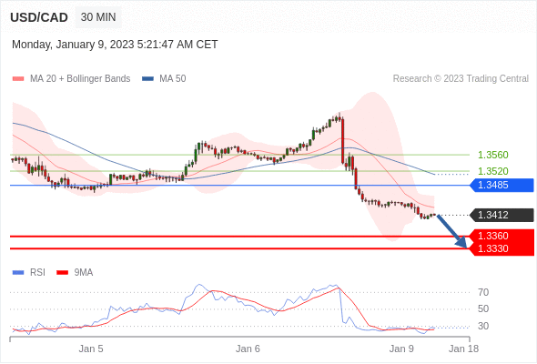 美元/加元汇率今日分析:在 1.3485 之下,看跌,目标价位为 1.3360 ,然后为 1.3330 。在 1.3485 上,看涨,目标价位定在 1.3520 ,然后为 1.3560。