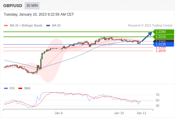 英镑/美元汇率今日分析:在 1.2135 之上,看涨,目标价位为 1.2210 ,然后为 1.2260 。在 1.2135 下,看空,目标价位定在 1.2105 ,然后为 1.2070。