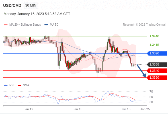 美元/加元汇率今日分析:在 1.3390 之下,看跌,目标价位为 1.3340 ,然后为 1.3320 。在 1.3390 上,看涨,目标价位定在 1.3415 ,然后为 1.3440。