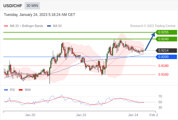 美元/瑞郎汇率今日分析:在 0.9200 之上,看涨,目标价位为 0.9240 ,然后为 0.9255 。在 0.9200 下,看空,目标价位定在 0.9180 ,然后为 0.9160。