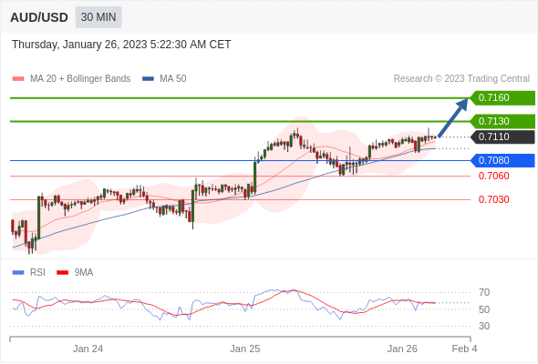 周四(1月26日)盘中, 澳元/美元暂报0.7116,涨0.0013,涨幅0.18%。