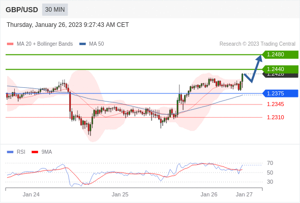 英镑/美元汇率今日分析:在 1.2375 之上,看涨,目标价位为 1.2440 ,然后为 1.2480 。 在 1.2375 下,看空,目标价位定在 1.2345 ,然后为 1.2310。