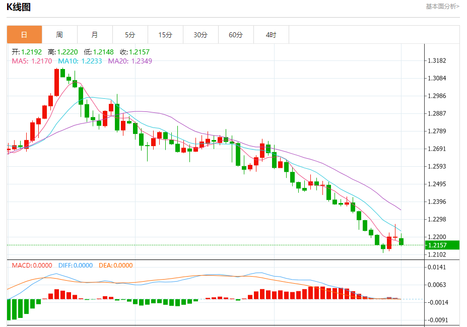 周一盘中,英镑/美元报1.2157,跌幅0.37%。