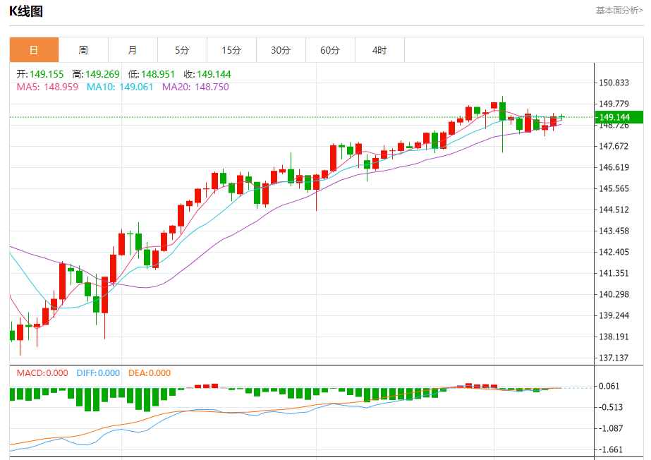 周四盘中,美元/日元报149.155,跌幅0.01%。