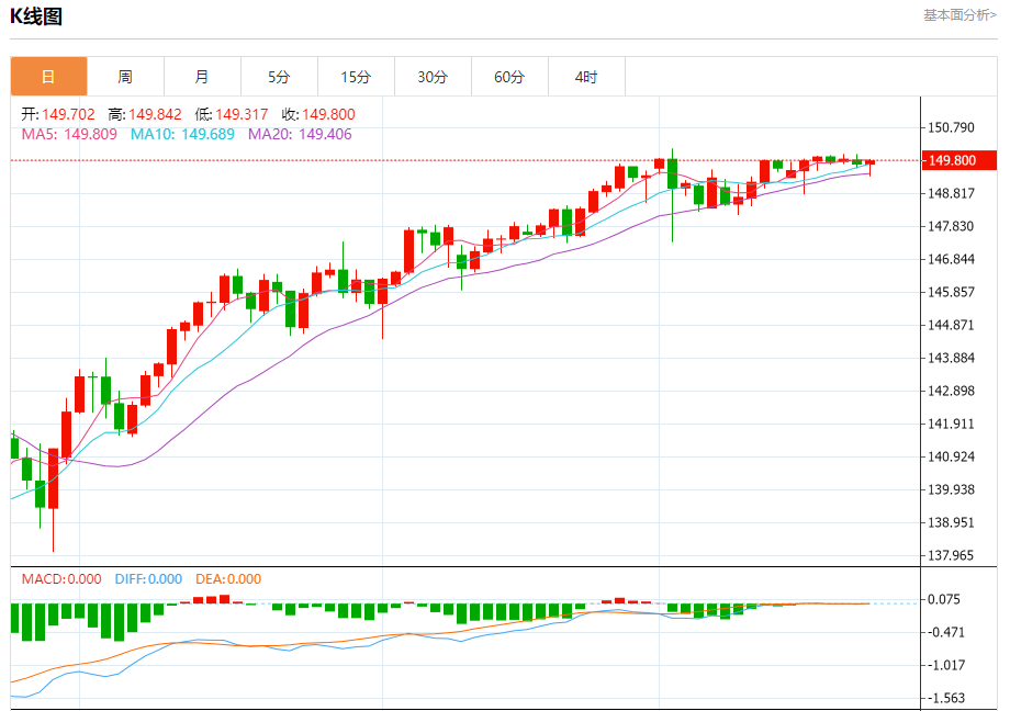 周二盘中,美元/日元报149.811,涨幅0.06%。