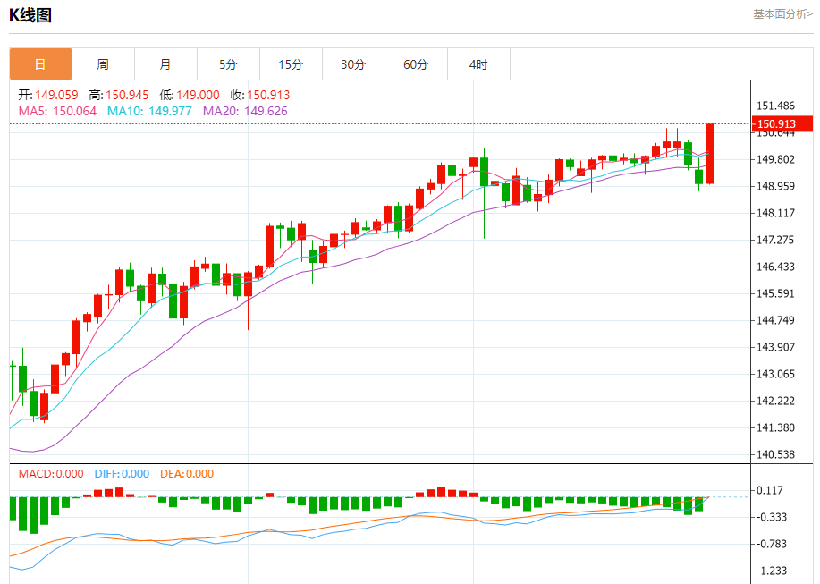 周二盘中,美元/日元报150.936,涨幅1.26%。