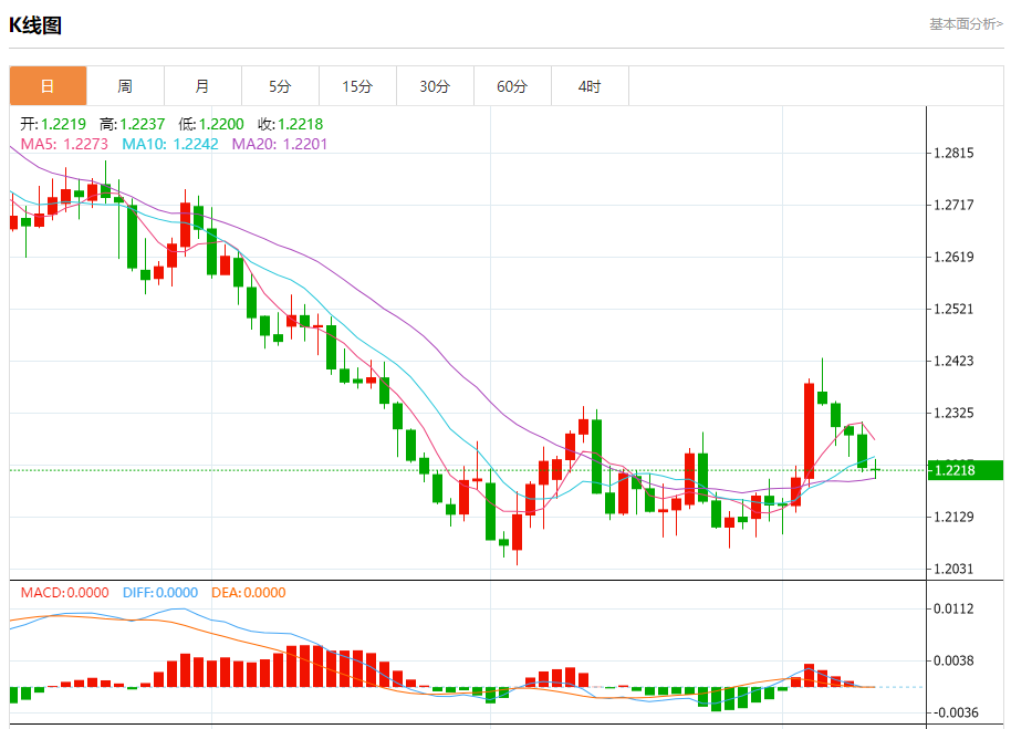 ÖÜÎåÅÌÖУ¬Ó¢°÷/ÃÀÔª±¨1.2220£¬µø·ù0.03%¡£