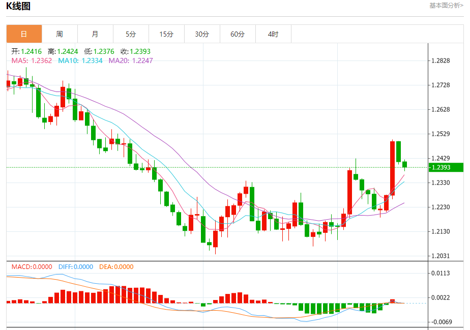 周四盘中,英镑/美元报1.2394,跌幅0.18%。