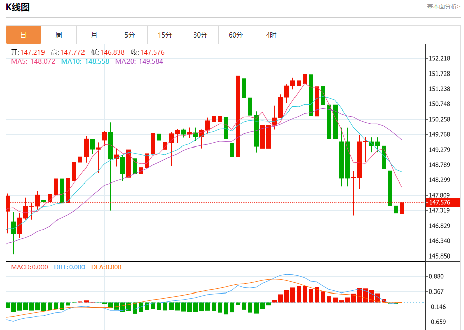 ÖÜËÄÅÌÖУ¬ÃÀÔª/ÈÕÔª±¨147.576£¬ÕÇ·ù0.22%¡£